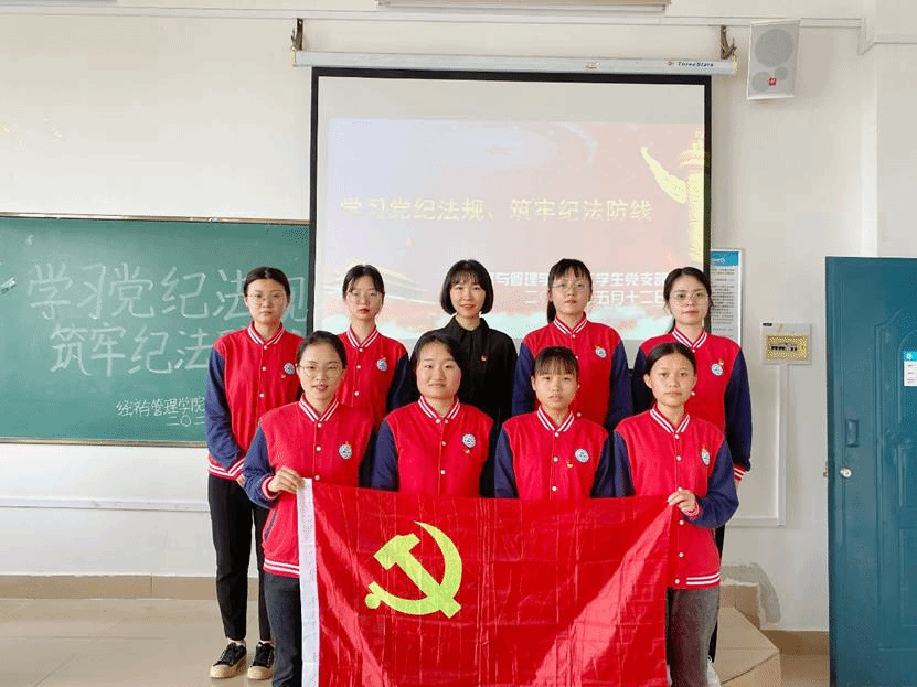为进一步教育引导广大党员坚定理想信念,增强“四个意识”,严守纪律规矩, 5月12日下午15时,在2502教室,经济与管理学院第二学生党支部举行“学习党纪法规,筑牢纪法防线”主题党日活动,党支部书记王海玲同志和全体党支部成员参加此次会议。