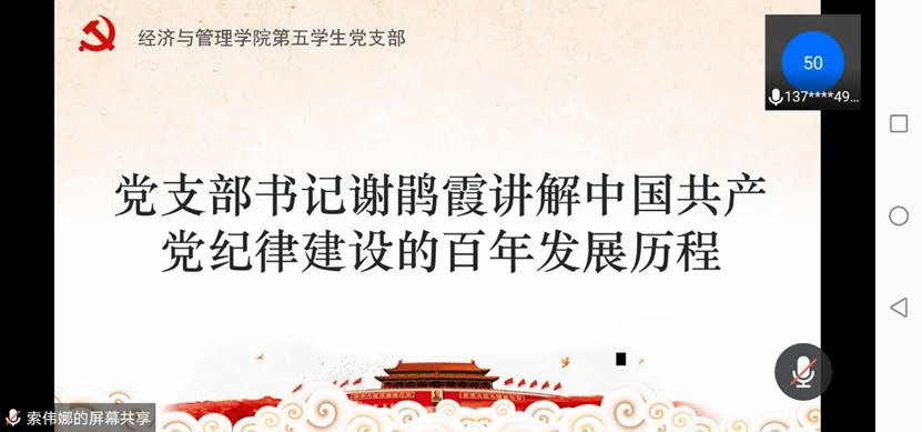 5月10日,经济与管理学院第五学生党支部采用线上+线下的形式,开展“喜迎建党百年,共沐漓院清风”主题活动。
