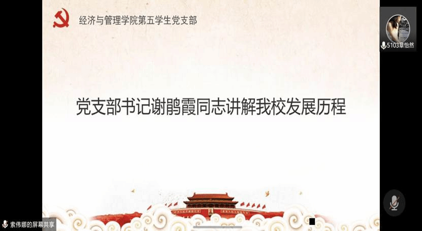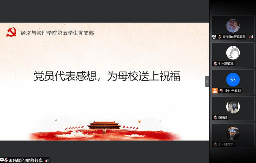 5月26日,经济与管理学院第五学生党支部通过腾讯会议,开展“感恩漓院二十载,我为母校送祝福”为主题的党日活动。