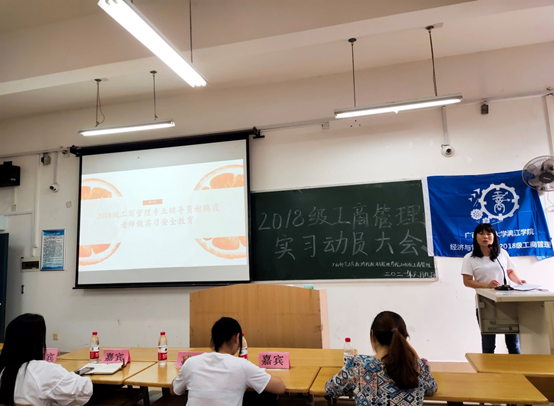 大会上,经济与管理学院副院长郑竹青老师做实习动员讲话,她首先提到毕业综合实习作为实践教学体系中的重要环节和人才培养方案的重要组成部分,有利于巩固和加强学生的基础理论,培养良好的职业道德,提高学生就业竞争力,同时有利于检验教学质量,促进教学改革。其次,要求同学认真对待,珍惜实习机会,将理论联系实际,提高专业技能本领。工商管理教研室吕思雅老师从毕业综合实习的内容和要求,实习的时间安排,实习的组织管理,实习的成绩评定等方面做了详细的布置,并提醒同学们结合实习的内容来开展毕业论文选题。辅导员谢鹃霞老师就实习的人身安全、工作安全、交通安全、住宿安全、饮食安全、求职安全、防诈骗安全以及疫情防控安全等方面做了教育,督促学生们在实习期间要注意安全,提高安全防范意识。