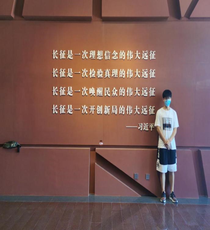 图3:“青客团队”成员在馆内刻有习近平的名言的墙面前拍照留念