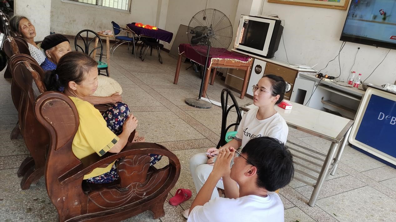 图5:“‘梦’乡小分队”团队队员采访社门岭村村民并与村民进行深入的交流