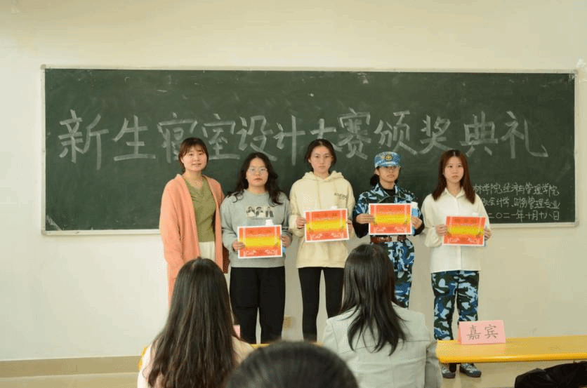 本次活动共有50多个寝室参与。由辅导员谢鹃霞、辅导员助理以及班级生活委员组成评定小组,分别从设计、文化、卫生、安全等方面对寝室进行评分。在整个评比过程中,寝室设计风格各异,各具特色。女生寝室温馨雅致,同学们对宿舍的墙体、天花板、门窗进行了精心的装饰——贴上温馨的墙贴,挂上可爱的手工千纸鹤,绚丽的“海底世界”,多彩的“幼稚园”,凸显宿舍文化氛围。男生寝室则以干净整齐为主,有红色主题风格,也有简洁大方的都市风采。最终评选出一等奖四名、二等奖八名、三等奖十名,并对获奖宿舍进行颁奖。经济与管理学院团总支副书记赵玲、辅导员谢鹃霞出席了颁奖现场。