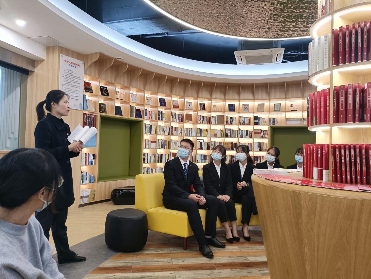期间,行长程维明、人力资源部副经理秦南茜与我院师生一起观看了建行党史教育视频,在红湾阅读红色作品,并就党史、初心及企业社会责任进行了交流讨论。程维明行长向我们介绍了建行分行如何在党的带领下,积极担负起社会责任,协助解决桂林的民生问题。学生就如何在银行岗位中不忘初心、勇担社会责任进行了互动交流。