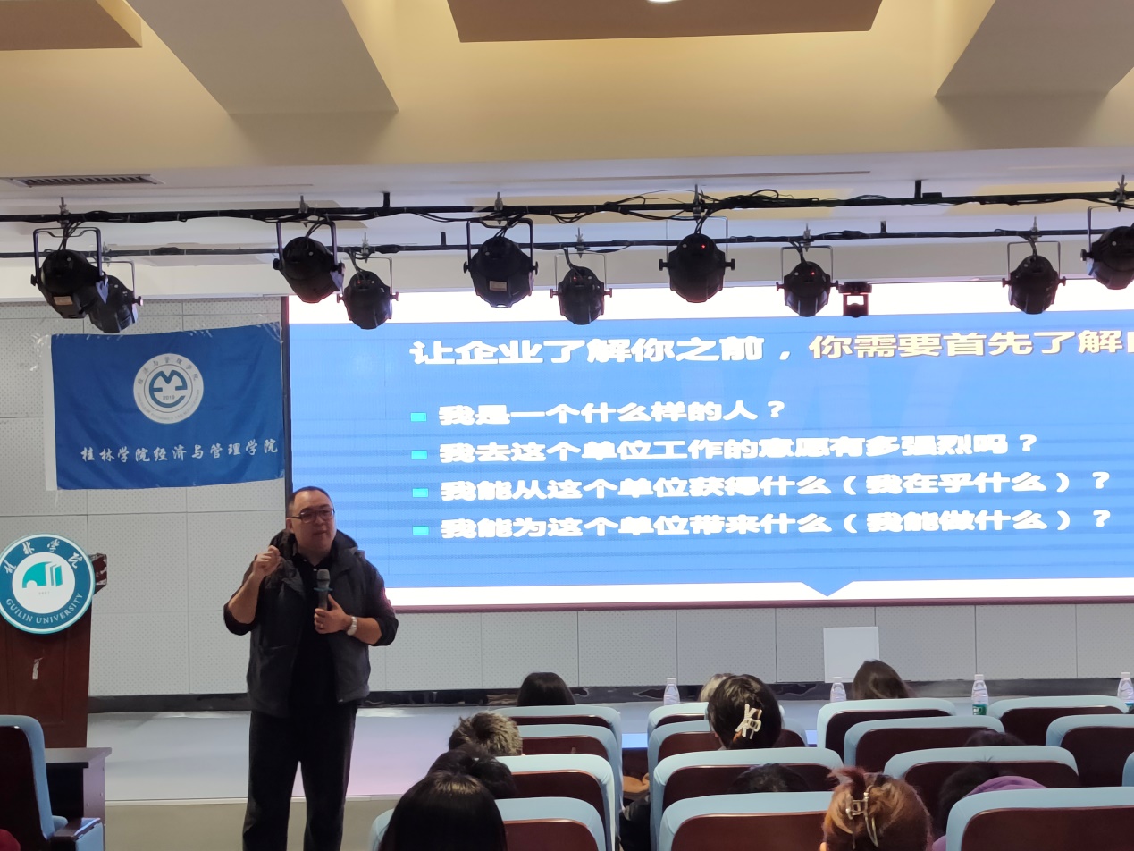 为提高我院应届毕业生的求职面试礼仪及技巧,提高毕业生在求职中的应聘能力和社会竞争力。12月3日晚上7:00,我院在至善讲堂举办求职面试礼仪及技巧专题讲座,特邀请桂林旅游学院团委书记李祺老师作为本次活动的主讲嘉宾。经济与管理学院党总支副书记韩磊、毕业班辅导员代表以及2018级各专业同学代表参加本次活动。
