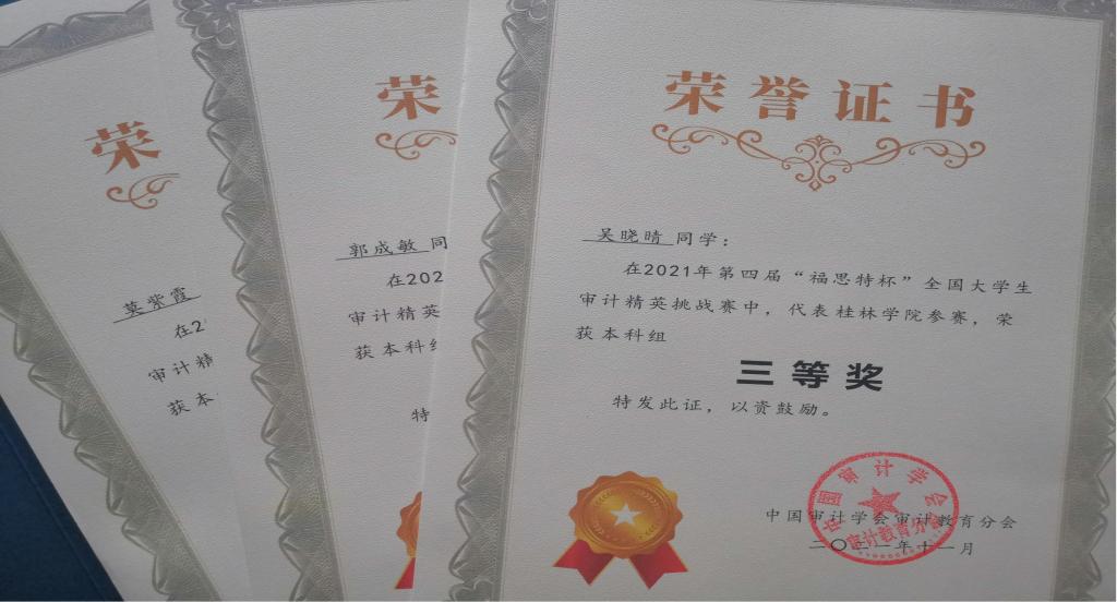 图二:代表队荣获审计精英挑战赛本科组三等奖