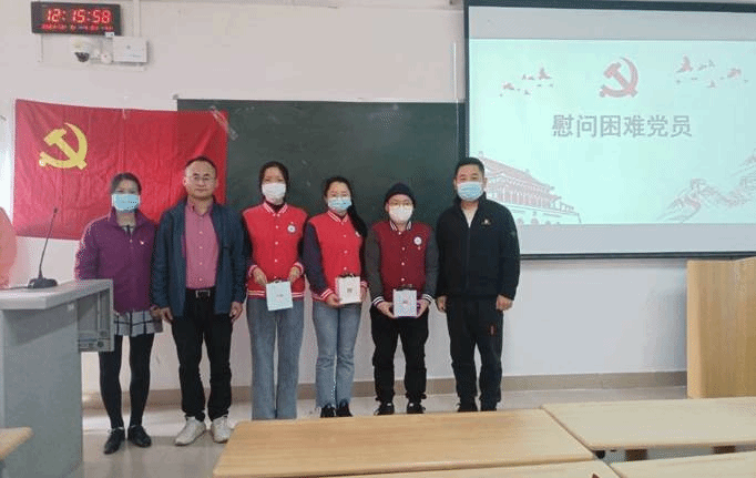 本次慰问对象为本支部原建档立卡户和低保户的党员。慰问活动中,党总支副书记韩磊老师为困难党员送上生活用品,鼓励他们积极面对生活中的困难,乐观向上,在学习生活中起模范带头作用。困难党员们表示今后会继续努力学习,积极进取,以实际行动践行共产党员的初心和使命,不辜负党组织的关怀和殷切希望。最后,党支部书记谢鹃霞老师希望困难党员克服生活上的困难,学好专业知识,加强党性修养,做一名合格的中共党员。