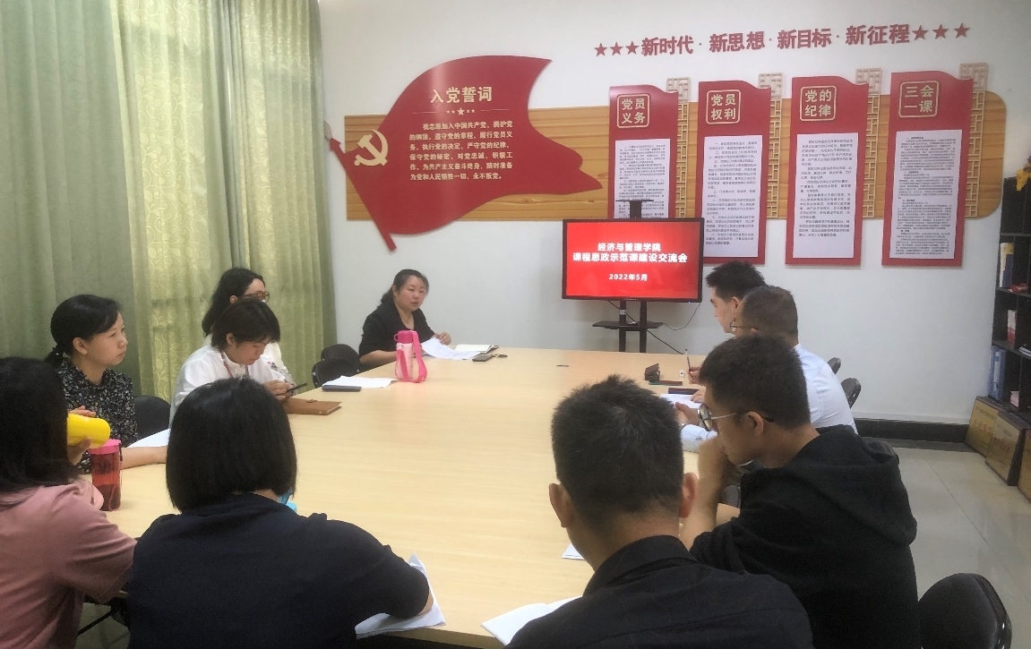 5月7日上午,经济与管理学院在党员活动室召开课程思政示范课程建设交流会,学院副院长郑竹青、校课程思政研发中心成员谭艳斌、吴萍、已获校级课程思政示范课程立项项目负责人、以及学院感兴趣的教师参与了本次交流会。