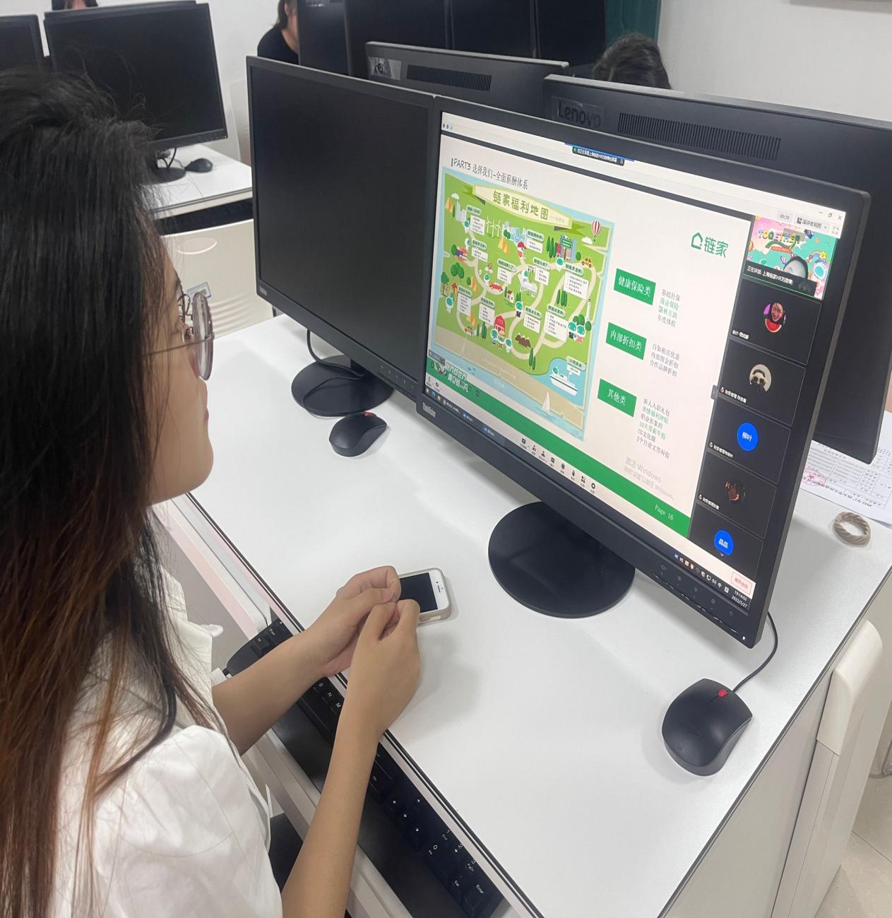 用人单位校招负责人刘微蒂首先展示了我院近年来部分校友顺利在链家集团入职的情况,然后一一介绍了链家集团的发展规模、业务范围和服务方式,尤其对于同学们关心的工作环境、薪酬待遇和工作福利等内容。最后进行现场交流答疑,针对同学们提问的问题,耐心的进行解答。