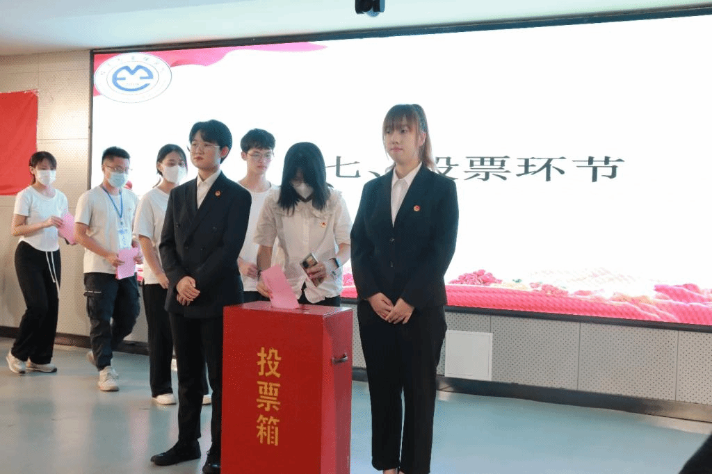 经济与管理学院团总支学生会换届工作从五月份开始筹备,各项工作准备充分。会上,各部门候选人从自我评价、自身优势、工作经验等方面进行了演讲。在各位候选人饱满激情的演讲后,在场老师和同学们进行投票。本次换届大会采取差额选举方式,现场唱票,最终选举产生第五届团总支、学生会主要负责人共36名。