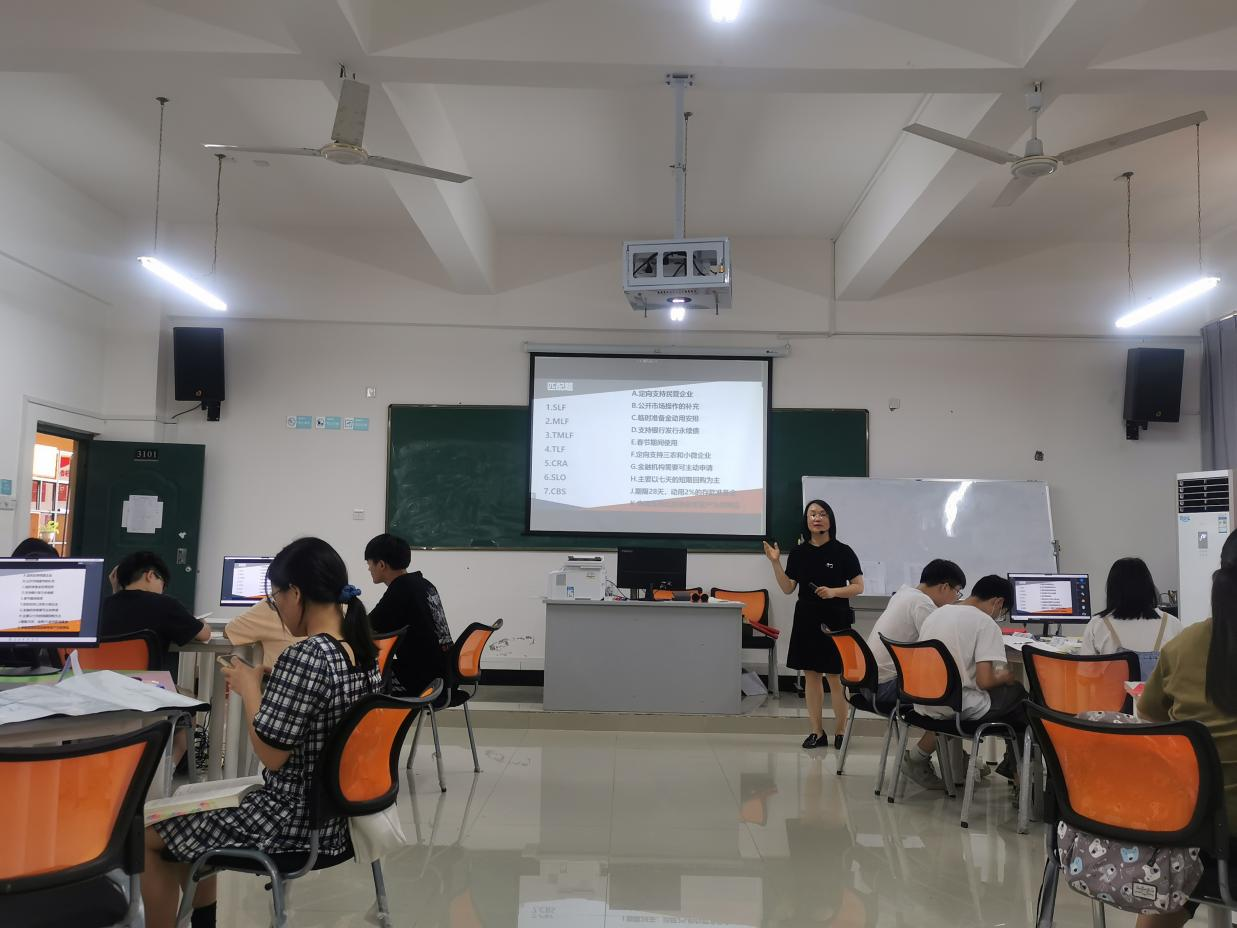 我院《金融学》课程是我校首批立项的课程思政示范课程。6月8日星期三上午45节,在公共教学楼3101沙盘模拟实训室举办了公开课活动。《金融学》课程经过一年的建设期,取得了较为丰富的研究成果。课程团队共计为三个专业、六个班级的300余名学生授课,课程育人效果显著,得到专家的高度评价和学生的高度认可,充分地发挥了专业课程作为教学育人主阵地、主渠道的作用。