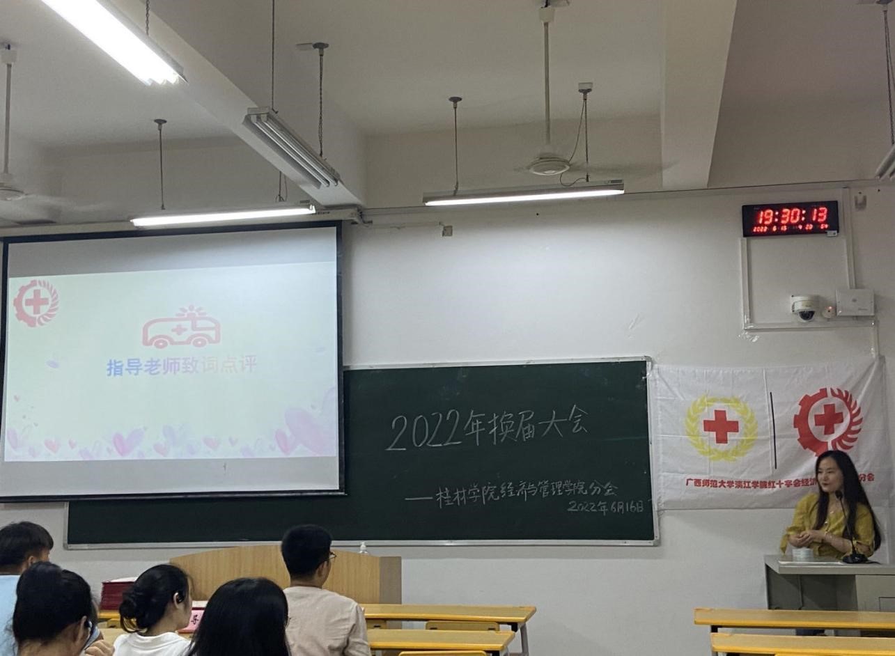 时光荏苒,岁月如梭,转眼间又是一年换届大会。桂林学院红十字会经济与管理学院分会于6月17日在1416教室开展以“奋发有为,实现自我”为主题的换届大会活动。出席活动的嘉宾有:经济与管理学院指导老师黄淑娟老师以及分会全体成员。