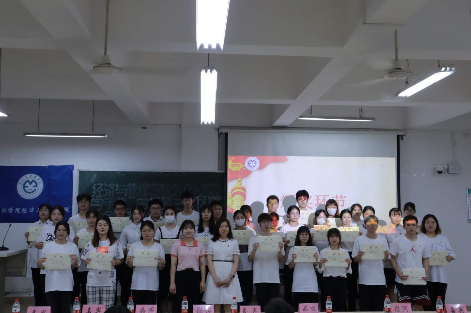 会议伊始,经济与管理学院团总支学生会各部门代表上台发言,对本学期的工作总结和下学期的工作计划进行汇报。接着,韩磊老师为近一年工作突出的学生干部们颁发了“工作积极分子”和“先进个人”荣誉证书。最后,刘竹青老师对本学期经管团学工作进行总结,提出希望各团学干部们能够以“向学向善,自律自强”为起点、“善·学·致·用”为支点,端正学习态度,始终用纪律和原则规范自身,打造更加和谐优秀的经济与管理学院。赵玲老师也提出学生干部当有“五来神掌”即要有“让我来”的主动和自信,“跟我来”的热情和担当,“一起来”的能力和意识,“你先来”的谦让和豁达,在谦让中积极向上,“向未来”的格局和胸怀。让我们秉承这样的信念让经济与管理学院在我们的共同努力下越来越好,再创新的辉煌。