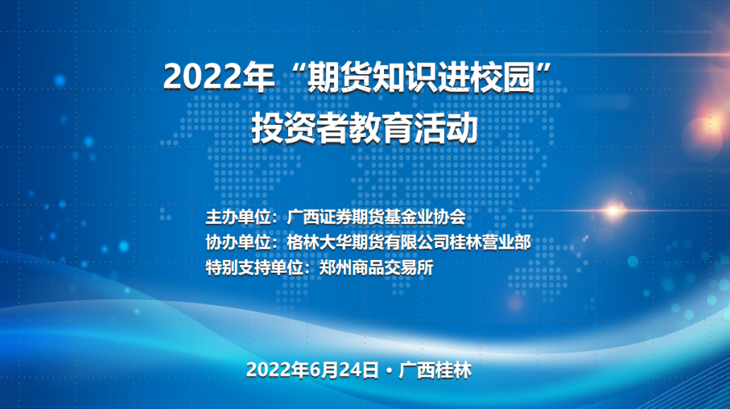 为进一步推动产教融合,培养社会急需人才。6月24日,我院特邀请格林大华期货有限公司桂林营业部在1307教室为2019级金融学学生开展“期货知识进校园”投资者教育活动。