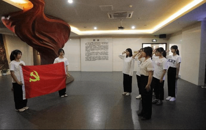 活动伊始,黄淑娟同志带领支部成员走进八路军桂林办事处参观,回顾党的光荣历史,追溯抗战期间八路军桂林办事的红色足迹。馆内,陈列着大量珍贵文物、照片和场景展示,从黄淑娟同志讲述中,党员们了解到八路军桂林办事处是广西抗日救亡、进行后方发动、实现全民族抗战的重要基地。活动中,同学们认真听讲、参观展览,激发了同学们浓厚的党史学习兴趣,黄淑娟带领支部成员重温入党誓词。黄淑娟表示,大学生党员应铭记为中国人民谋幸福、为中华民族谋复兴的初心,要在党史学习教育中、干实事中、为人民服务的过程中补足精神之钙,以担当迎接二十大的到来,为实现伟大复兴的中国梦而努力奋斗。