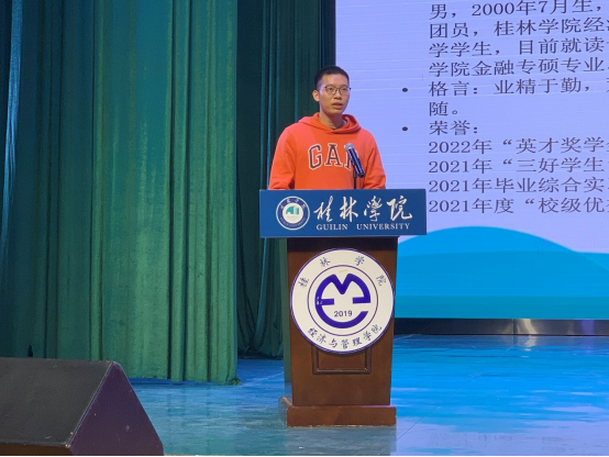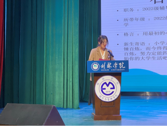 伴随着《义勇军进行曲》,大会拉开了帷幕。大会伊始,彭院长发表讲话,他希望新生经过大学四年的学习生活,具有健全人格、宽厚基础、创新思维、国际视野和社会责任感。随后,新生辅导员代表石盼盼上台发言,希望同学们不畏艰难,努力学习,不断提升自己。接着,优秀校友代表倪和义、老生代表章怡然围绕学习、生活、个人发展、考研、考证等方面分享大学的经验和收获,以自身经历为新生树立榜样,寄予期盼。新生代表董楚琦认为大学是广阔而自由的天地,应该展现自我风采,提高社交能力,靠努力博得前程,靠自律赢得自由。