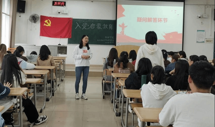 本次党课由党支部书记谢鹃霞主讲。首先谢老师以中国共产党什么时候成立,中国共产党取得哪些光辉的业绩为切入点,向同学们介绍了中国共产党发展的光辉历程,增强同学们对共产党的理想信仰。接着为同学们介绍入党的五个基本程序,对入党的流程进行了详细的解读,让同学们明确了入党的要求和条件,激发了同学们入党的热情。最后谢老师就同学的疑问,进行了认真解答。