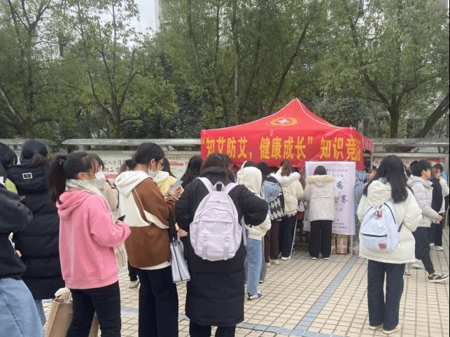 活动开始前,各部门成员分工明确,积极配合,提前到达摆摊地点做好工作需要的准备。在活动中,全校师生的积极踊跃参与,通过知识竞答为主,了解艾滋病的相关知识,竞答过程中,工作人员引导参赛人员扫码进行答题,竞答全对5题及以上,工作人员会给参与活动人员颁发礼品。最后,值班人员收拾会场并清理场地的卫生工作。该活动发扬了我校红十字“人道,博爱,奉献”的精神宗旨,此次活动在一片温馨的气氛中落下帷幕。