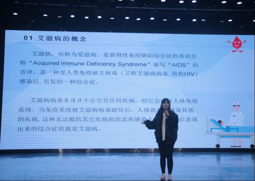 讲座伊始,赵玲老师向同学们科普了艾滋病的概念、传播途径、感染过程及如何预防等方面的知识,督促学生们要牢记“三要”,不仅要学习艾滋病预防知识,更要采取正确的艾滋病防护措施,在发生高危行为后要及时阻断和检测。赵玲老师还提醒同学们要养成良好的生活习惯,同时教育学生不必过于紧张,日常生活的接触如握手、拥抱、打喷嚏、使用办公用品等均不会传播艾滋病毒。最后,赵玲老师告诉学生要正确看待艾滋病患者,艾滋病患者是社会的弱势群体,我们应该对他们保持宽容,给予支持和信任,不能歧视他们。