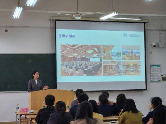 本次宣讲会先由广西沃顿国际大酒店刘一丹主管对酒店的发展历程、酒店概况、员工环境、招聘岗位、职业规划与发展等方面进行了系统的宣讲,之后通过与学生互动的方式,介绍了各个岗位的具体工作内容。