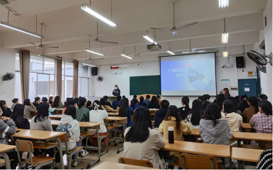 图2:管理工程学院&广西沃顿国际大酒店招聘宣讲会现场