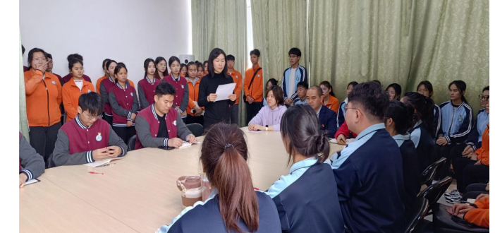 党总支书记甘华成对本次会议作了指导讲话并提出了两点要求:一是要坚定不移地把“两个维护”作为最高政治原则,确保教育领域始终是党的领导的坚强阵地,加强习近平新时代中国特色社会主义理论和党的二十大精神学习,学习党章和党内有关重要法规,将理论学习教育常态化;二是要彰显学生党支部的工作亮点和特色,突出党建引领、融合业务发展,打造党支部特色品牌,为学院的高质量发展贡献力量。