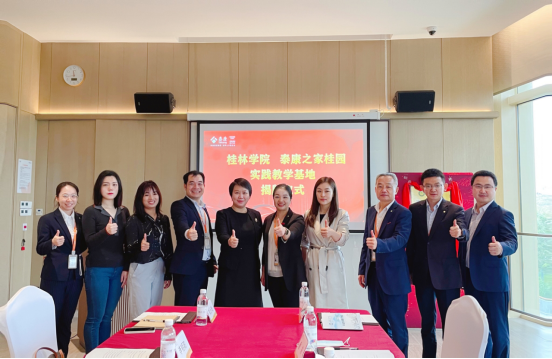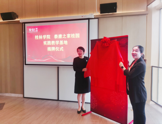 座谈交流结束后,杨庆庆与泰康之家桂园社区、桂园康复医院分别举行校企合作签约仪式及校外实践基地揭牌仪式。