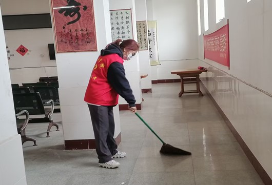 志愿者和正在打扫卫生
