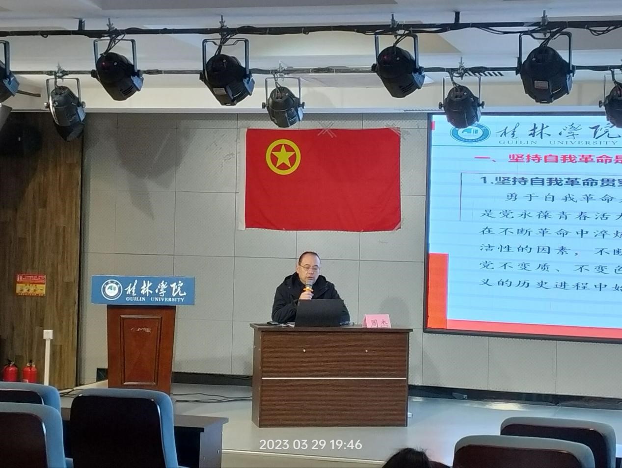3月29日19:20,管理工程学院2022年度“青年马克思主义者培养工程”大学生骨干培训班第五次理论课程学习在至善讲堂顺利开展,课程围绕“党的二十大以及两会精神”进行学习。莅临本次大会的嘉宾有桂林学院教育学院党总支书记周杰,桂林学院管理工程学院团总支书记刘竹青。