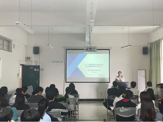 3月30日上午,管理工程学院/名淘电商学院于至善楼3106和3206教室针对我校21级、20级电子商务及国际经济与贸易的学生组织了2023年度“1+X”跨境电商B2B数据运营职业技能等级证书考试培训的宣讲会。