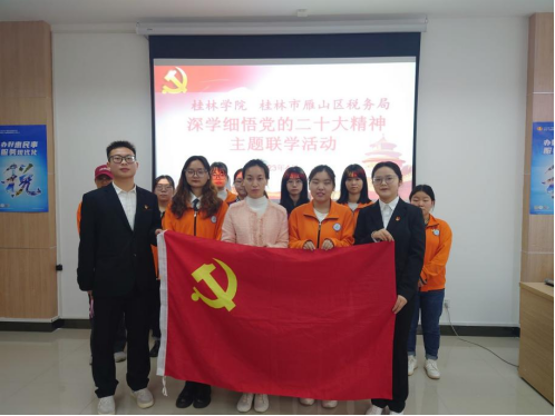 4月6日上午,桂林市雁山区税务局、桂林学院财务处、图文信息中心、管理工程学院联合举办“学思践行二十大 政校共建助力税法宣传”活动暨“第32个全国税收宣传月活动启动仪式”,在我校图书馆C馆三楼会议室举行。管理工程学院第五学生党支部党员参加本次活动,财务资产处处长沈云亲临指导。