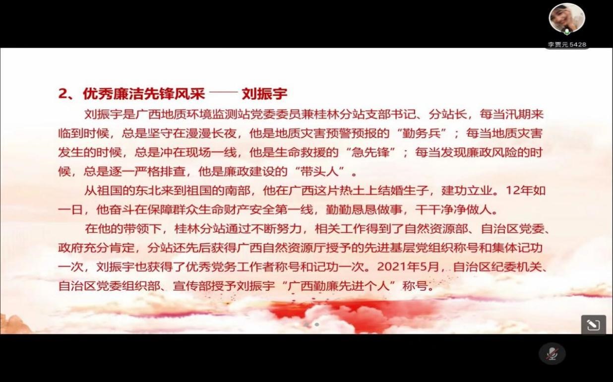 为保持党支部成员的先进性、纯洁性,4月24日下午,管理工程学院第二学生党支部在线上腾讯会议开展“党旗领航·争创清廉先锋”主题党日活动。党支部书记黄淑娟、副书记石盼盼及党支部全体党员参加此次会议。