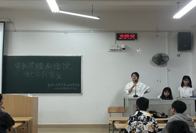 活动伊始,党支部武佳伟同志结合自身面试经验、职业选择,讲述就业单位性质、招聘休息渠道、就业发展规划,同时分享部分就业相关公众号、APP,引导同学树立正确的择业观、就业观,提升求职技能与职业素质,增强就业竞争力,勇担时代潮头。在提问答疑环节,同学们围绕如何规划实习、面试技巧、简历制作等提出疑问,武佳伟同志进行详细的解答,并给予建议。最后,石盼盼总结道:有了学长宝贵的求职经验的加持,同学们必定能在未来求职的道路上披荆斩棘,收获满满。