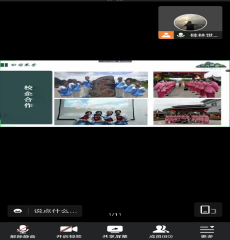 为进一步拓宽就业渠道,助力学校高质量发展。5月10日,我院邀请桂林阳朔山水旅游开发有限公司开展招聘宣讲会,本次宣讲会采取线上的形式进行,桂林阳朔世外桃源景区人力资源部毛副经理主持,学院党总支书记甘华成、毕业班辅导员郝环一及2019级旅游管理和2020级旅游管理专业共计80余人参加了此次会议。