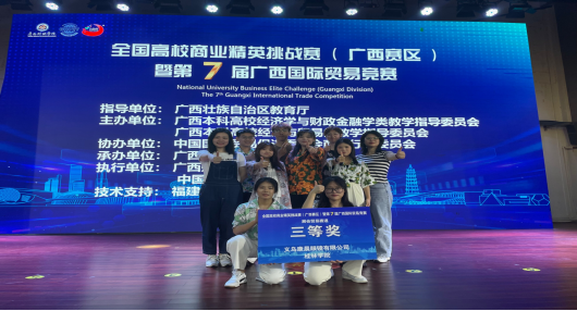我院共选送4支队伍参加比赛,在多位老师的悉心指导下,充分发挥电子商务、国际经济与贸易专业优势,精心组织、周密安排,采用校企合作、线上及线下集中培训、强化训练等有效举措,积极备战。经过激烈角逐,由周莹、张欣老师指导的学生参赛队伍“义乌康晨眼镜有限公司”和林荣池、刘雨婷老师指导的“深藏blue队”分别荣获本次大赛展会贸易赛道和线上数字赛道三等奖各一项, 并顺利取得全国高校商业精英挑战赛国际贸易竞赛总决赛的资格,届时期待我院学子再创佳绩,为学校争光添彩!