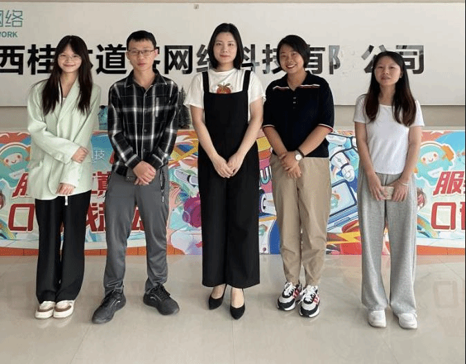 图3:周莹、覃玉老师与道客网络单位导师、实习生