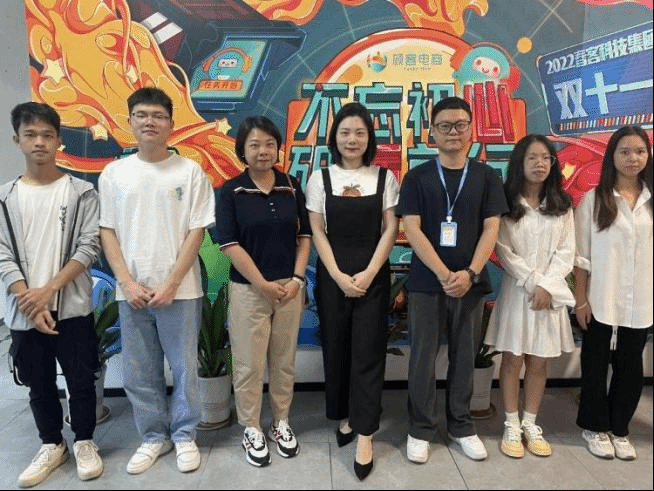 图1:周莹、覃玉老师与颜客电商单位导师、实习生