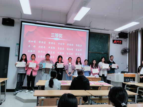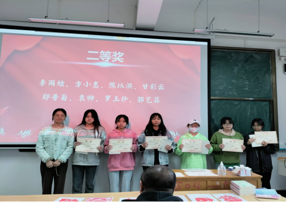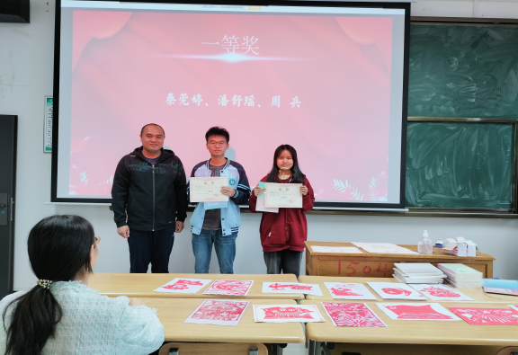 “传承红色文化·续时代华章”剪纸比赛,评选出一等奖3个,二等奖8个,三等奖21个。颁奖典礼由石盼盼主持,汤靖、吴东艳和沈娟分别为获得一等奖、二等奖和三等奖的新生颁发奖状及奖品。
