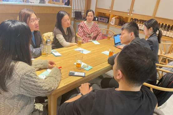 2023年11月24日在桂林学院大益茶室,旅游教研室专任教师及用人单位杭州开元森泊集团针对学生实习开展毕业研讨活动。会议由旅游教研室主任奉莹莹主持,教研室副主任刘小玲、专任教师刘莹莹、钟珺,辅导员沈娟老师及杭州开元森泊集团人力资源部刘浩桐总监等一行8人出席本次研讨会。
