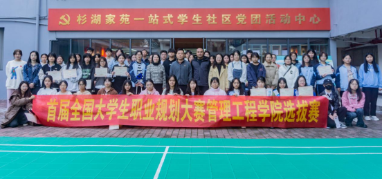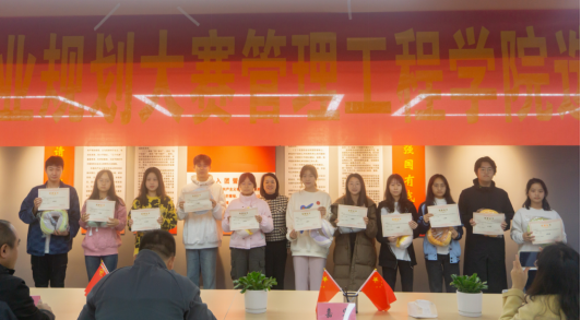 11月27日,管理工程学院在一站式学生社区党团活动中心举行首届全国大学生职业规划大赛管理工程学院选拔赛颁奖典礼,管理工程学院党总支书记韩磊、党总支副书记汤靖、副院长伍林蓉、辅导员石盼盼、辅导员沈娟以及所有获奖学生参加了此次颁奖典礼。