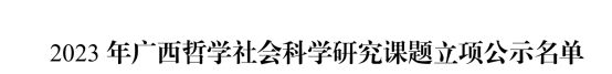 近日,广西哲学社会科学规划研究课题2023年度立项名单揭晓,我院两位教师荣获广西哲学社会科学研究自筹课题立项资助(名单如下)。这一成就是我院在科研领域近年来的重要进展,标志着我院科研工作的持续发展和努力,同时为我院的科研发展注入了新的动力。
