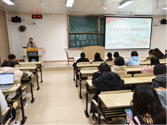为深入贯彻党的二十大精神,扎实推进廉洁教育和学风建设,不断提升师生廉洁素养,筑牢师生廉洁修身意识,建设清廉学校,12月10日,管理工程学院各年级专业依托班级活动为载体,积极开展“厚植廉洁文化,涵养清风正气”廉洁文化教育主题班会,努力营造风清气正的育人氛围。