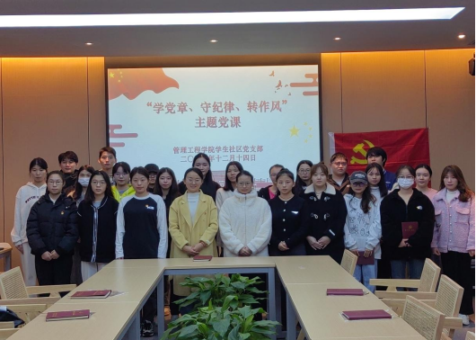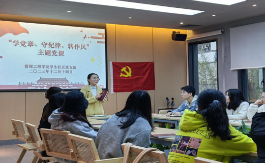 为引导学院师生进一步夯实清正廉洁思想根基、厚植廉洁奉公文化基础,结合推进清廉学校建设的各项工作要求,营造浓郁的校园廉洁文化氛围。12月14日,管理工程学院学生社区党支部在杉湖家苑“一站式”学生社区开展“学党章、守纪律、转作风”主题党课活动。会议采取线上线下相结合的方式进行,支部书记沈娟以及支部全体成员参加了此次活动。