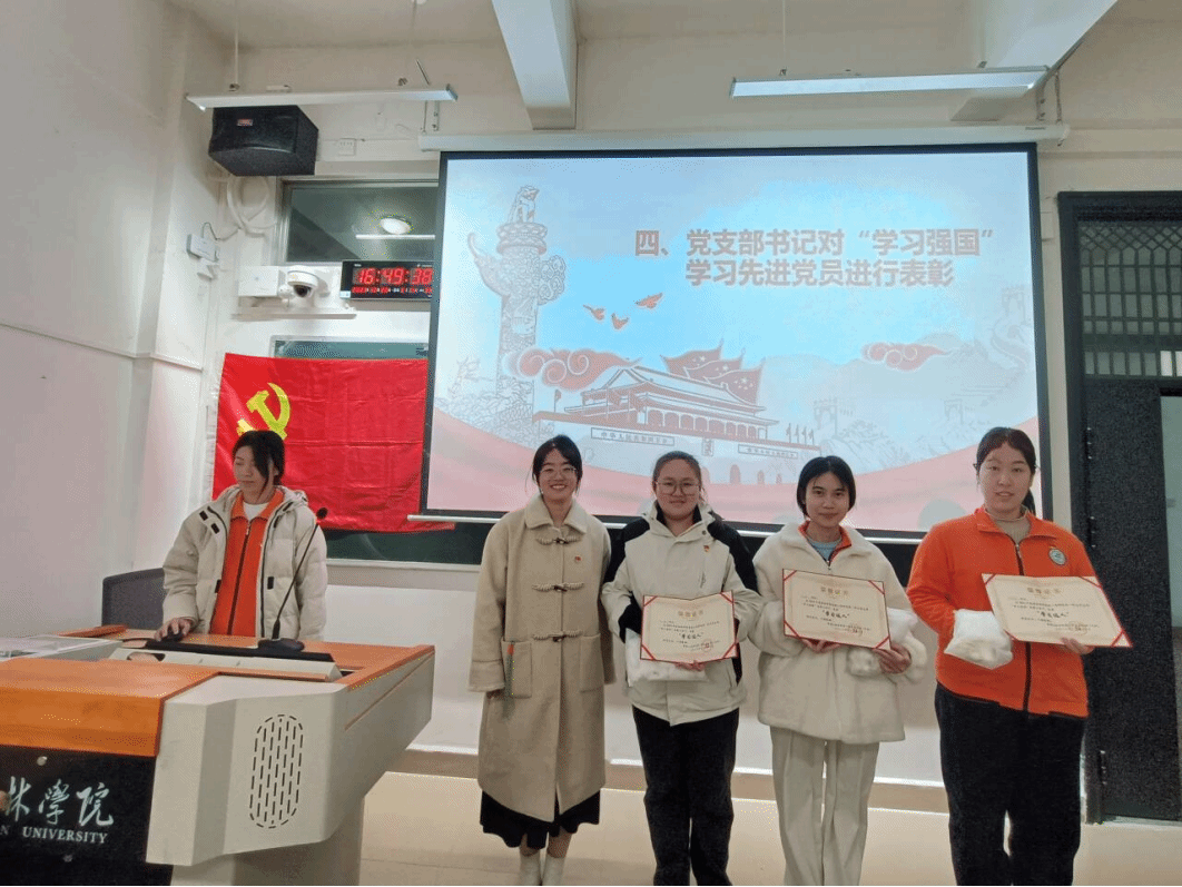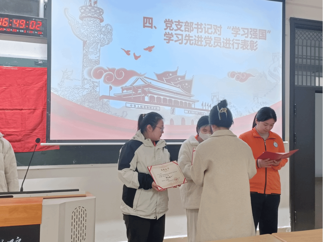 12月20日下午,管理工程学院第一学生党支部在1303教室举行 “党旗领航·扬帆谋新篇暨学习强国表彰大会”活动。管理工程学院第一学生党支部书记石盼盼、副书记吴东艳以及支部全体成员参加此次活动。