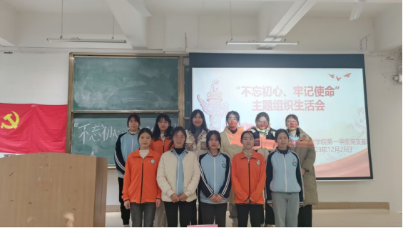 12月26日下午,管理工程学院第一学生党支部通过线上+线下相结合的方式在1207教室举办“不忘初心、牢记使命”组织生活会。管理工程学院第一学生党支部书记石盼盼、统战委员王海玲及支部全体成员参加此次活动。
