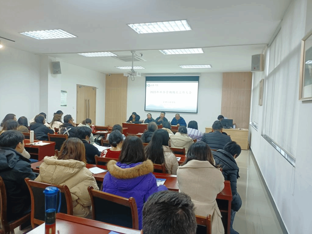 1月8日,我院在图书馆C馆3楼报告厅召开了2023年秋季学期期末工作大会,学院领导班子、全体教职工参加此次会议。