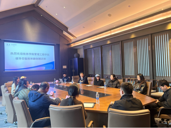 为切实了解学生实习情况,管理工程学院院长(主持行政工作)郑竹青、党总支书记韩磊、副院长伍林蓉、党总支副书记汤靖一行7人于3月14日前往桂林融创酒店群,开展2022级专升本及2020级会展经济与管理专业实习生实习中期检查工作,受到了桂林融创酒店群领导和实习指导老师的热情接待。