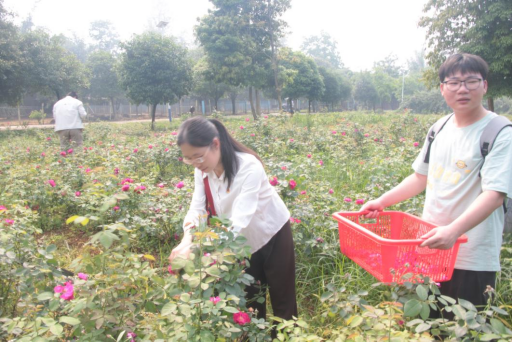 活动伊始,学院邀请了专业的花艺师为学生们带来了一场精彩的花艺讲座。花艺师不仅介绍了各种花卉的寓意和养护技巧,传授大家修剪玫瑰花技巧。学生们在花艺师的指导下,深入庄园内部,共同开展采摘可食用玫瑰、修剪、打理植物等活动,感受到了花卉带来的愉悦和放松。随后的“花语心声”分享会上,学生们通过花语表达内心的情感,分享自己的成长经历和心路历程。
