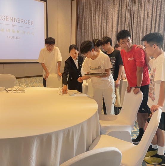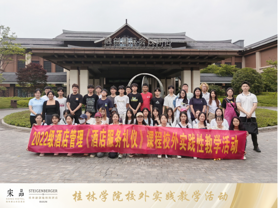 为进一步贯彻落实我校应用型人才培养的办学理念,提高学生动手实践能力,加强理论与实践深入结合,将行业实践技能引进课堂教学活动。4月29日,在学校及学院领导安排部署下,我院2022级酒店管理专业的42位同学前往桂林融创酒店群组织学生开展校外实践教学活动。