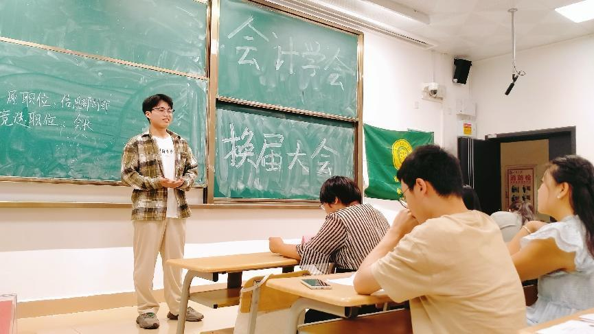 此次换届大会秉承民主、公正的原则,在积极热烈的氛围中有条不紊的画上了圆满的句号。会计学会第九届成员将接过学长学姐们的接力棒,带着会计学会走向新的征程。